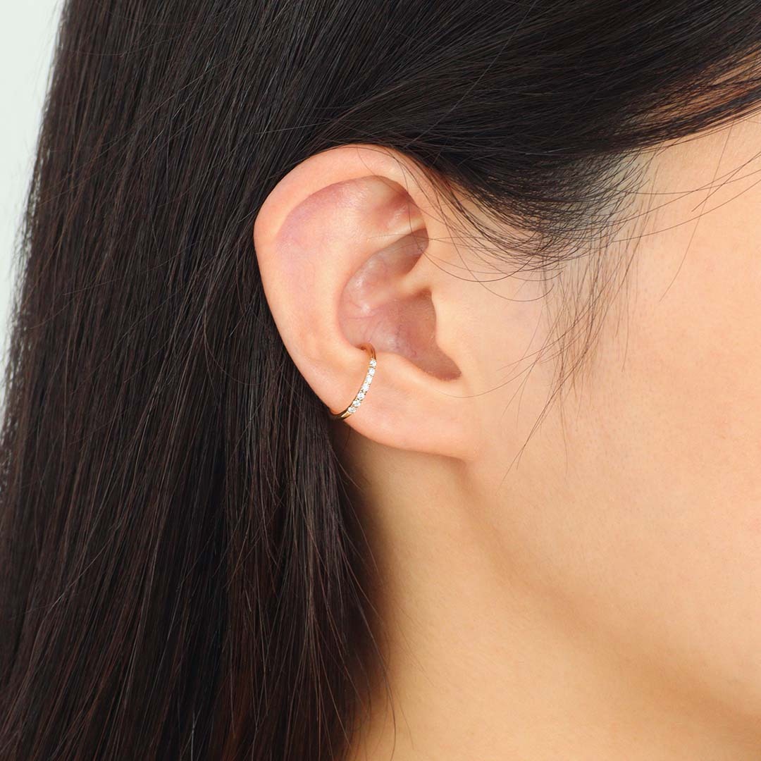 ベーシックなハーフエタニティデザインをイヤーカフに。